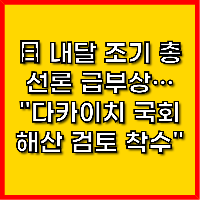 일본 정계에 다시 한번 격랑이 일고 있습니다. 지난해 이시바 시게루 전 총리의 패배로 여소야대 정국을 맞이했던 자민당이, 다카이치 사나에 총리의 결단 아래 정권 기반 재편에 나섭니다. 이번 조기 해산 검토는 단순한 일정 조정을 넘어, 다카이치 총리가 추구하는 강한 일본의 기치를 공고히 하겠다는 정치적 선언으로 해석됩니다.