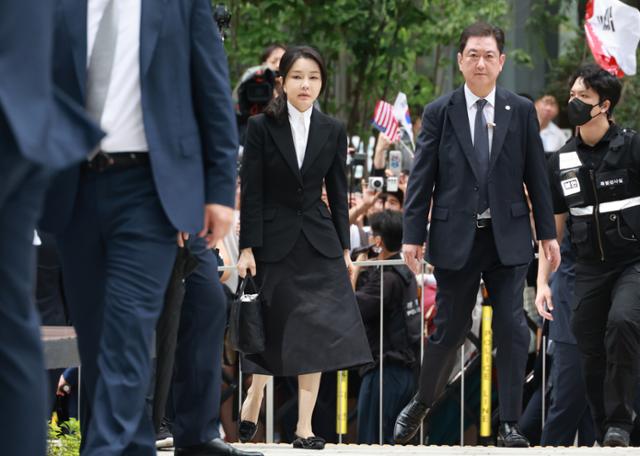 김건희 여사는 이날 오전 10시 10분쯤, 검은색 정장 차림으로 특검팀 사무실 앞에 모습을 드러냈습니다. 👩💼