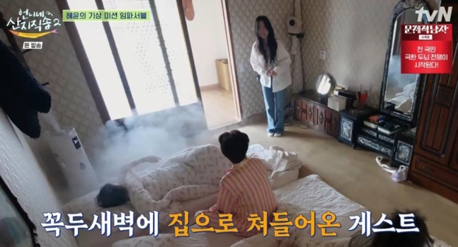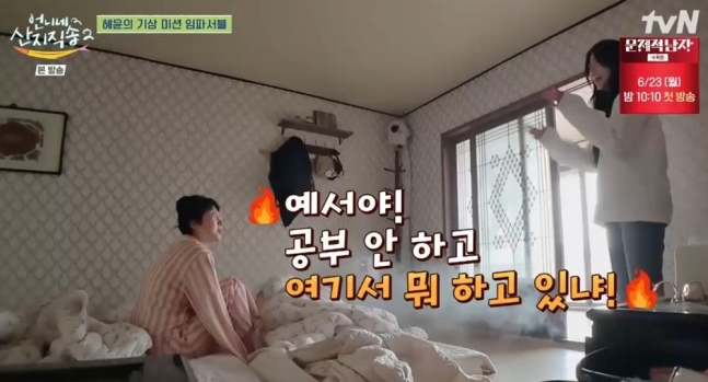 '언니네'의 유일한 남자 멤버 이재욱과의 만남 역시 놓칠 수 없는 볼거리였습니다. 👀 김혜윤은 MBC 드라마 '어쩌다 발견한 하루'에서 함께 호흡을 맞추며 풋풋한 케미를 선보였던 이재욱을 깨우기 위해 그의 방으로 향했습니다. 🛌 "재욱아"라는 김혜윤의 부름에 이재욱은 꿈쩍도 하지 않고 이불을 뒤집어쓴 채 다시 잠을 청했습니다. 😴 예상치 못한 이재욱의 반응에 김혜윤은 황당함을 감추지 못하며 웃음을 자아냈습니다. 😂