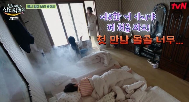 고요한 아침, 김혜윤은 염정아, 박준면, 임지연이 잠든 방을 조심스럽게 찾아 "엄마"라고 속삭였습니다. 🤫 인기 드라마 '스카이 캐슬'에서 모녀로 호흡을 맞췄던 염정아와 김혜윤의 깜짝 재회에 모두의 시선이 집중됐습니다. 😲 잠에서 깬 염정아는 눈을 동그랗게 뜨며 "예서야, 공부 안 하고 여기서 뭐 하고 있니?"라고 반갑게 맞이했고, 김혜윤은 웃음을 터뜨리며 화답했습니다. 🤣 드라마 속 냉철하고 카리스마 넘치던 모녀의 모습은 온데간데없이, 훈훈하고 정겨운 분위기가 감돌았습니다. 🥰