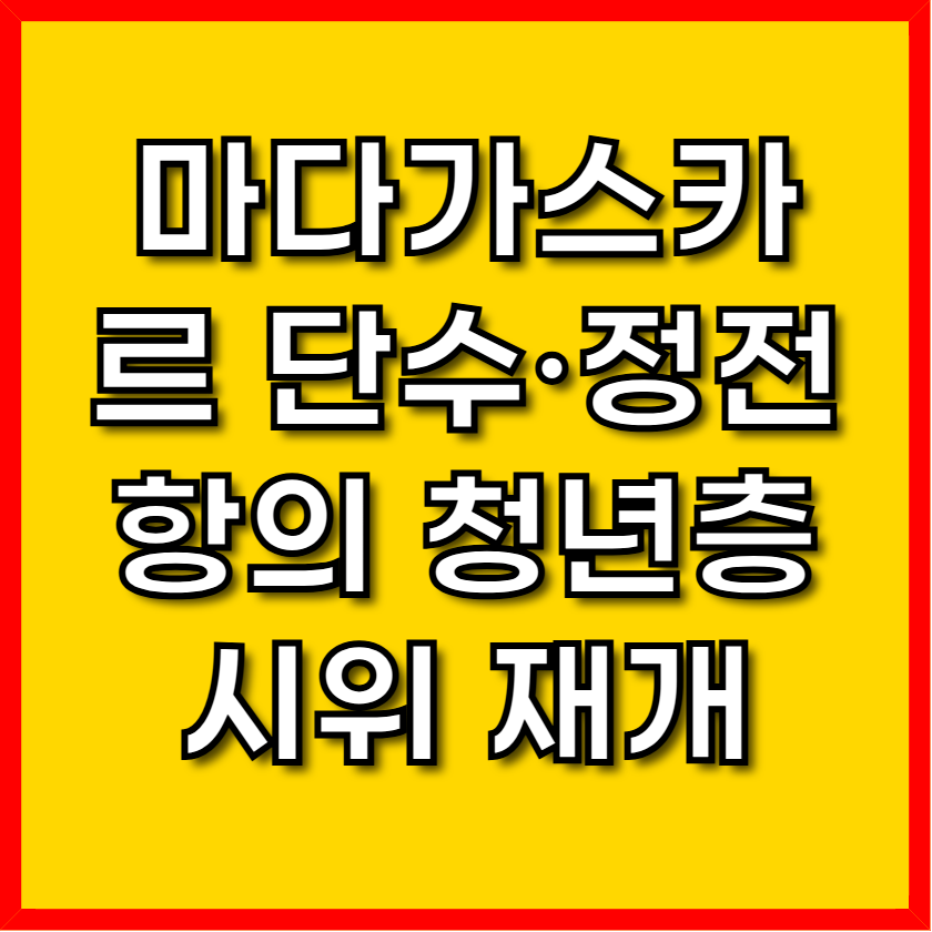 아프리카 섬나라 마다가스카르에서 만성적인 단수·정전에 항의하는 시위가 재발하였습니다. 특히 청년층이 주도하는 이 반정부 운동은 정치적 불안정의 깊은 뿌리를 드러내고 있습니다.