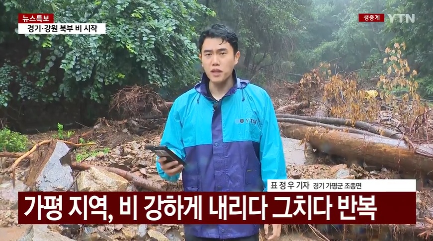 지난 폭우로 산사태 피해가 컸던 경기 가평군 조종면에 다시 한번 비가 강하게 내리고 있습니다. ⛈️